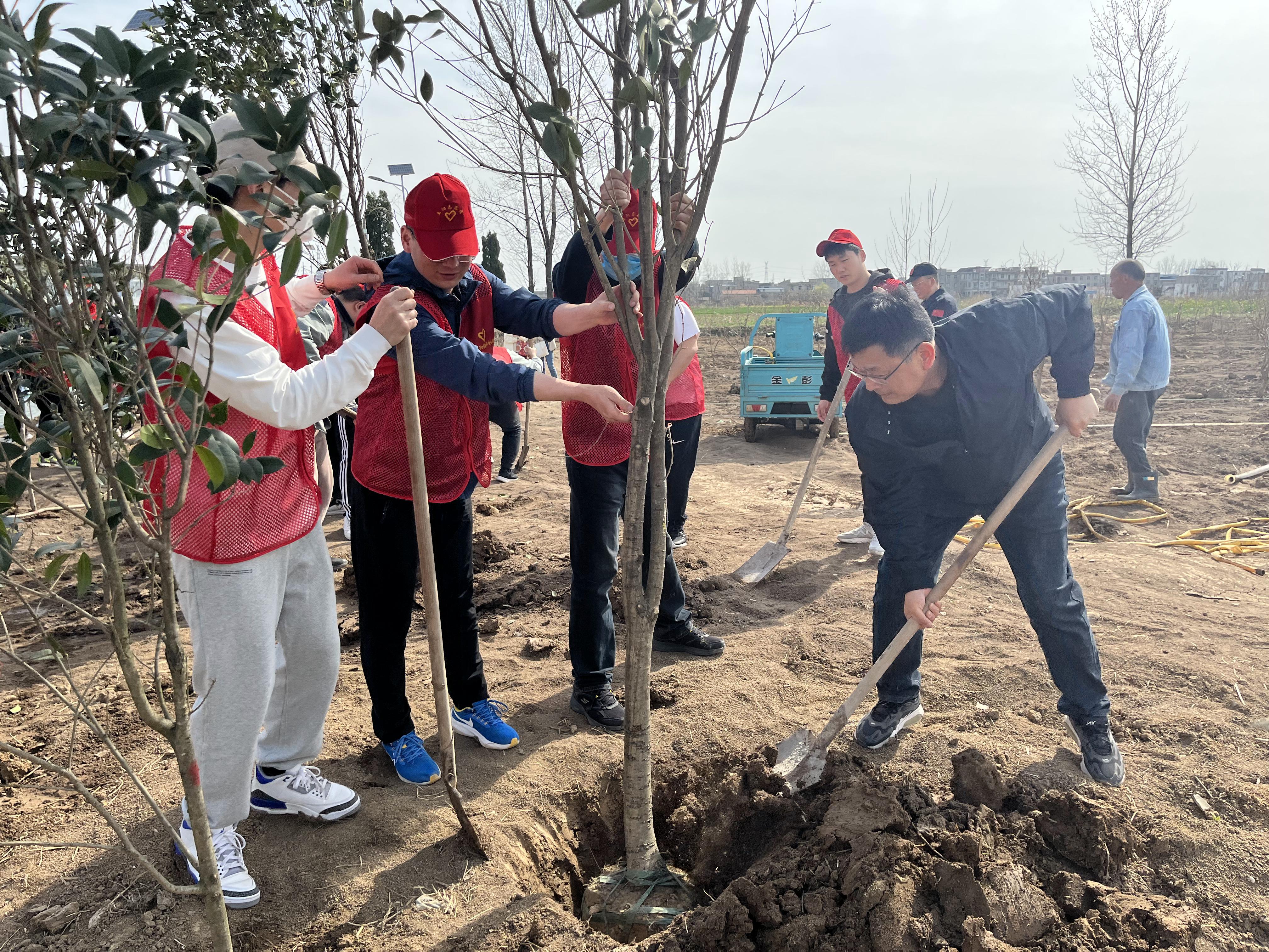 活動(dòng)當(dāng)天,公司一行人來到潁泉區(qū)中市街道街頭社區(qū)。在現(xiàn)場(chǎng)技術(shù)人員的指導(dǎo)下,全體人員干勁十足、精確分工,充分發(fā)揮團(tuán)隊(duì)協(xié)作精神,揮鍬鏟土、定點(diǎn)挖坑、放苗回填、固土澆水一氣呵成,以實(shí)際行動(dòng)為家鄉(xiāng)增添一抹新綠。